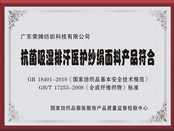 bwin必赢抗菌吸湿排汗医护纱绢面料产品符合国家标准